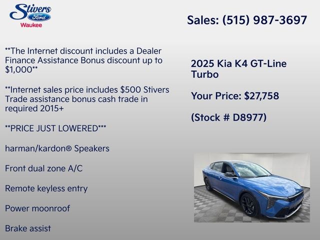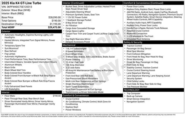 Don't miss your opportunity to own this exceptional 2025 Kia K4 GT-Line Turbo. Visit our showroom or contact us now to make it yours.