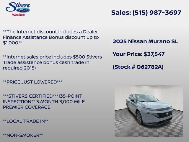 This 2025 Nissan Murano SL is an exceptional value, and we're confident it will exceed your expectations. Visit our showroom today to experience this remarkable crossover for yourself. We're certain you'll be impressed by its quality, performance, and unbeatable combination of features.